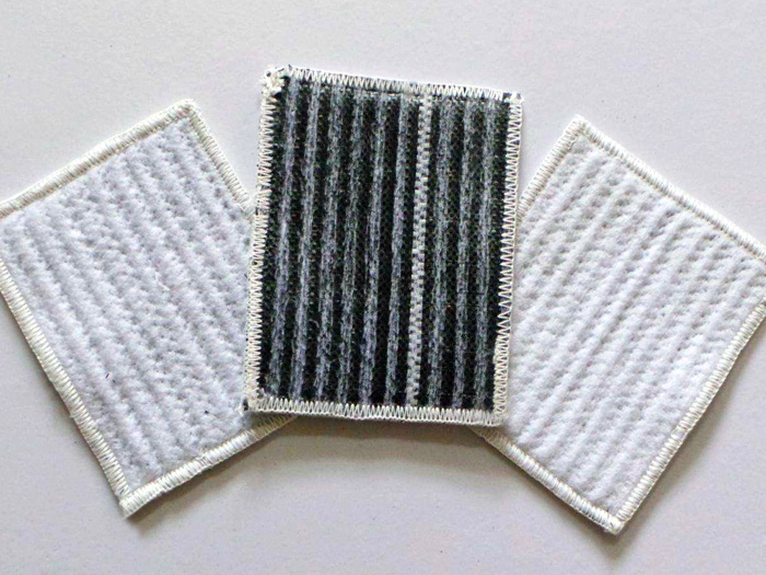 6、膨潤土防水毯的鋪設方式必須保證膨潤土防水毯與下面地基直接接觸,排除褶皺。任何褶皺、折疊或拱起都可能會造成土層其他的土工材料發生同樣的情況,為了避免褶皺、折疊和拱起,我們將會根據技術說明的要求通過對膨潤土防水毯的重新鋪放或者切割和修補來消除這些問題。